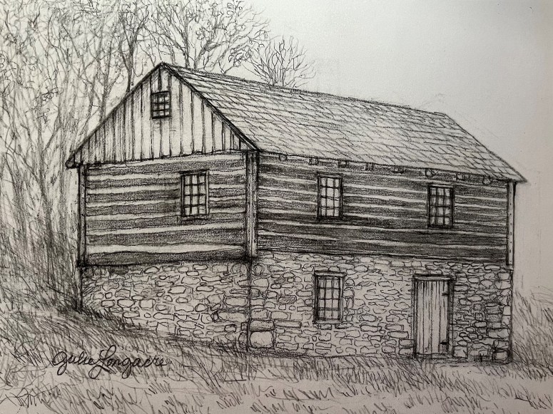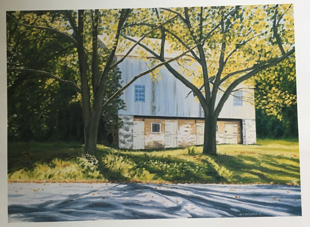 The prints are: A farm located at the intersection of King’s Highway and Rock Rd. south of Zionsville; A barn on Geissinger Rd (formerly the Hoffman farm; A wooded scene – not sure of location.